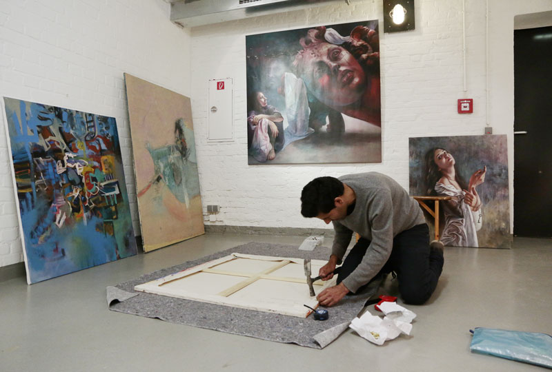 Allen ist dabei ein 'vor' und ein 'nach' dem Krieg gemein. Auch die Zeit vor dem Krieg ist gekennzeichnet durch Grenzen. Man konnte nicht alles malen, was man im Kopf hatte, äußert etwa einer von ihnen. Zwischen Flucht und dem aktuellen Krieg wiederum liegen vielerlei Erfahrungen von Gewalt und Zerstörung, die allesamt die künstlerische Aktivität beeinflussen: Hoffnung korrespondiert mit Machtlosigkeit, Leben mit Tod, Freiheit mit Repression. Aus diesem künstlerischen Spannungsfeld heraus bezieht die Ausstellung ihren Reiz. Alle Künstler sind dabei mit mehreren Werken vertreten, so dass die Ausstellung einen umfassenden Überblick über die aktuelle syrische Kunstszene vermittelt.