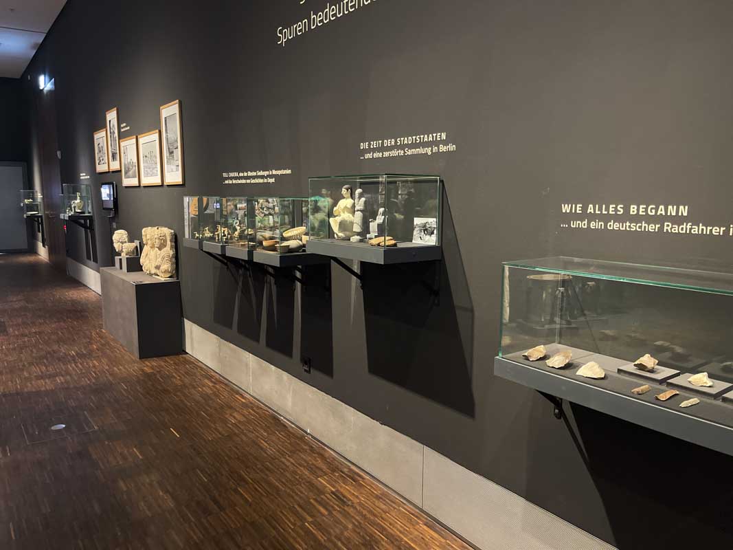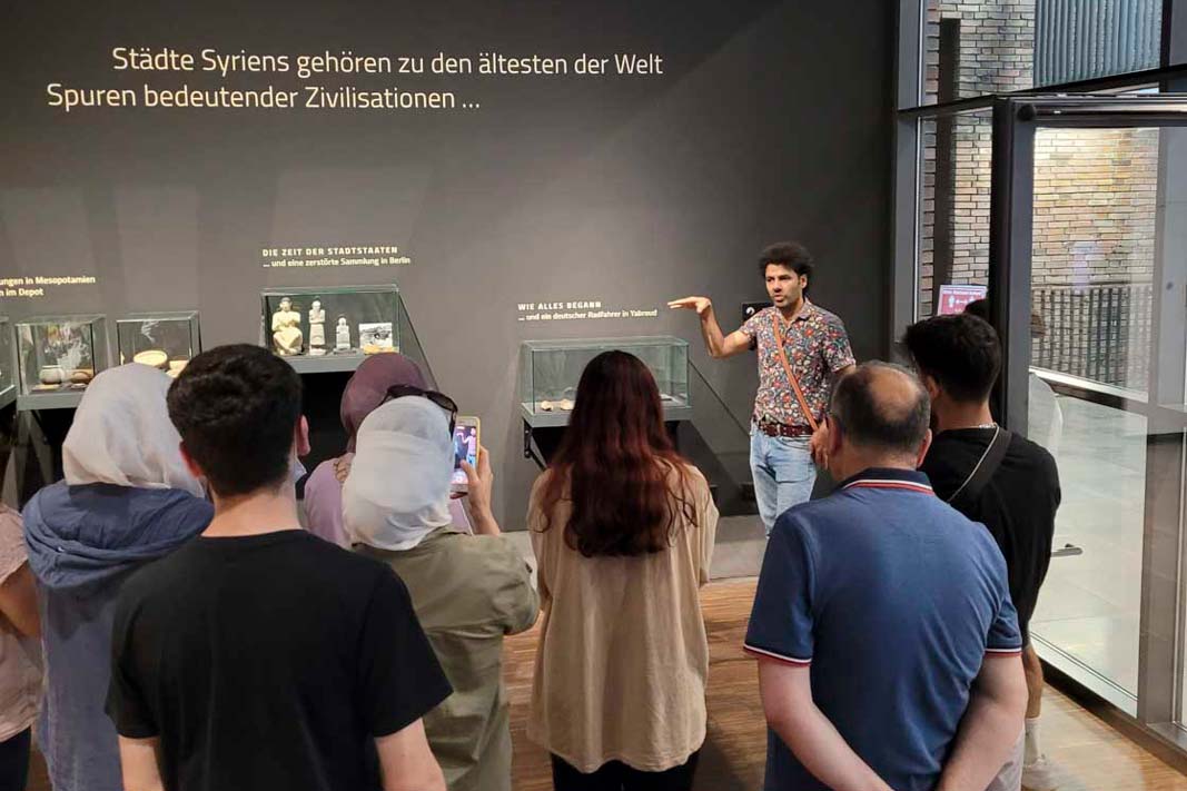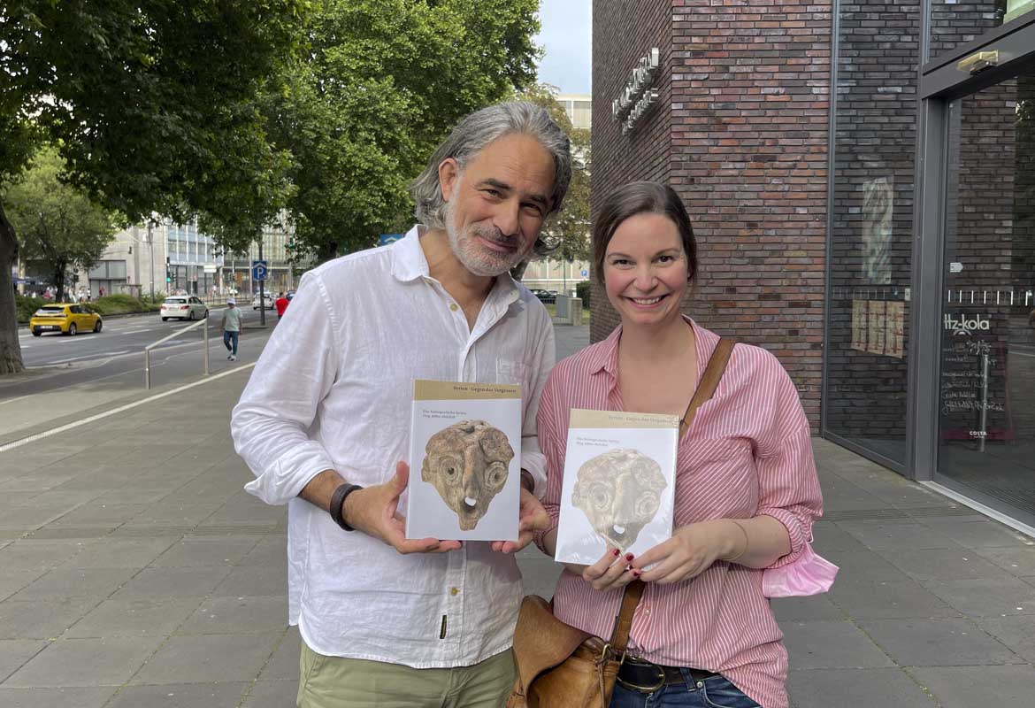 Über die gezeigten Objekte taucht ein neues Kapitel der syrisch-deutschen Geschichte auf, die die Frage aufwirft, wie die Objekte in die Sammlung deutscher Museen kamen. Vielfach waren es deutsche Wissenschaftler*innen, die mit ihrer archäologischen Forschung zum Verständnis der frühen Zivilisationen im heutigen Syrien beitrugen. Zahlreiche Funde brachten sie nach Deutschland. Im Zweiten Weltkrieg wurden viele davon zerstört, andere gerieten ihrerseits in Vergessenheit und werden mit der Ausstellung zum ersten Mal präsentiert.