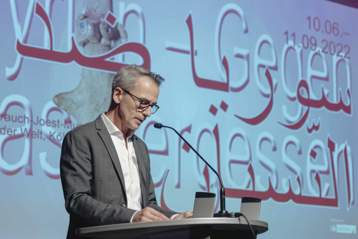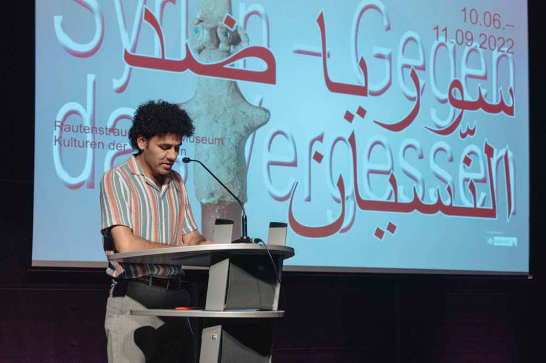 Kuratiert wird „Syrien – Gegen das Vergessen“ von Jabbar Abdullah, syrischer Kurator und Archäologe wohnhaft in Köln. „Mir war die Ausstellung ein Herzensanliegen. Sie richtet sich neben der syrischen Community an die deutsche Öffentlichkeit, die sich allein auf den Krieg, den IS und das zerstörte Palmyra zu konzentrieren scheint. Gleichzeitig möchte ich dem Vergessen der syrischen Kultur in den Köpfen syrischer Kinder etwas entgegensetzen. Sie haben das Land ihrer Eltern nie sehen können.“