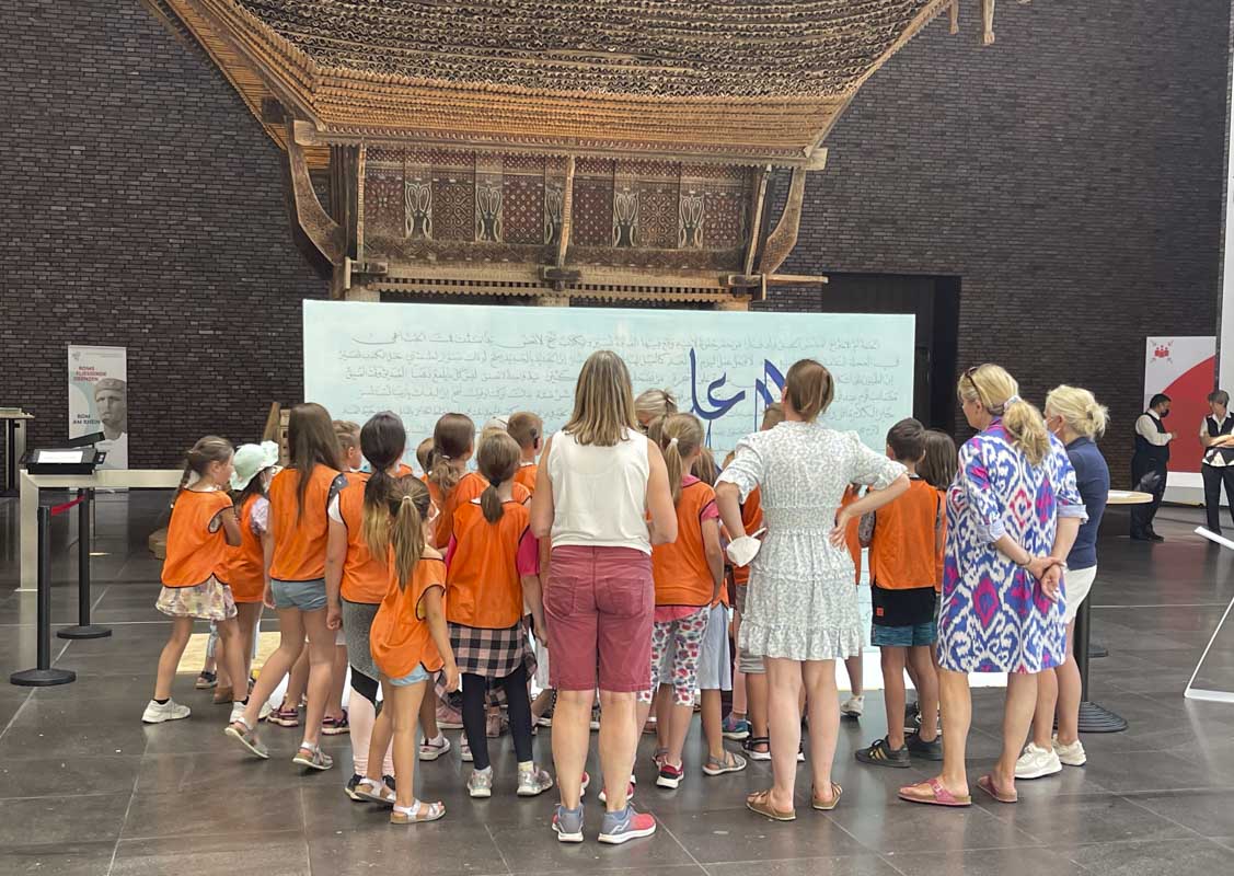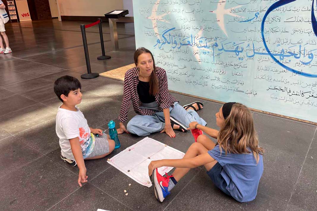 Live-Kunst des Schreibens: Zehn Tage lang wird der arabische Kalligraph Ibrahim Alsaeid im Museum arbeiten, Besucher*innen sind eingeladen ihm zu zusehen und mit ihm ins Gespräch zu kommen.